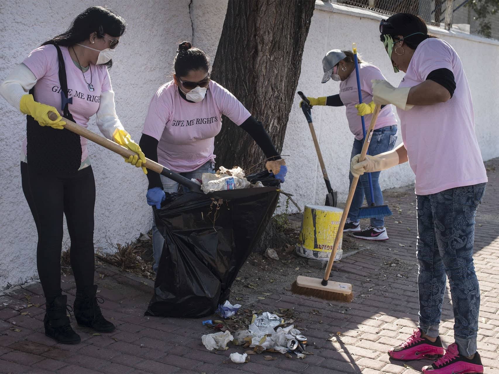 Fotografía de las Trabajadoras Sexuales de Afemtras realizando labores de limpieza y mantenimiento en Villaverde